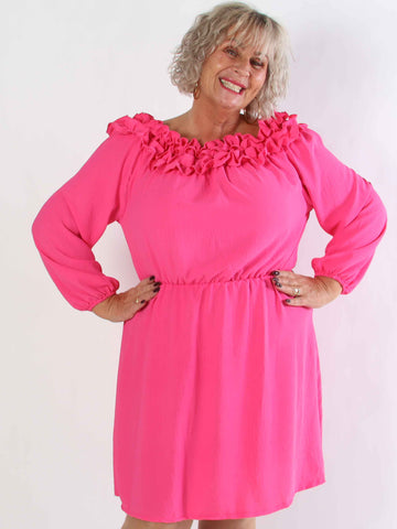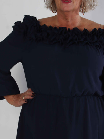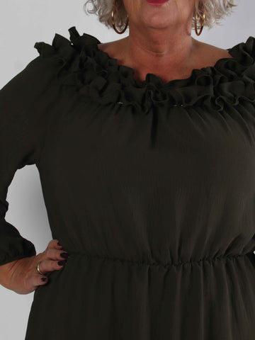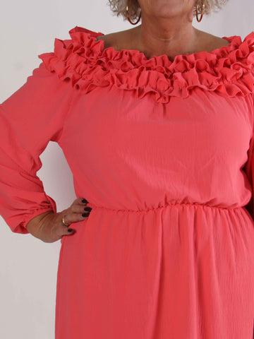 Chili Fitted Dress - Plus size klänning med volangkant och resår i midjan