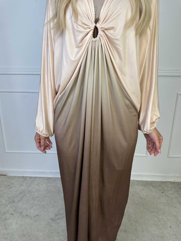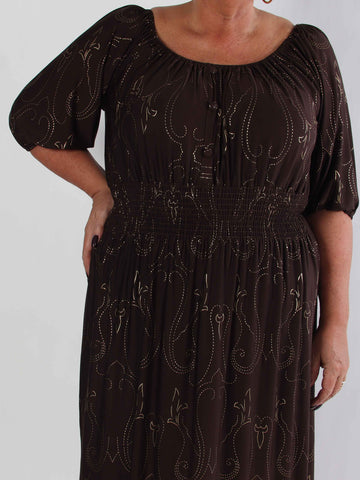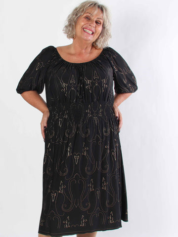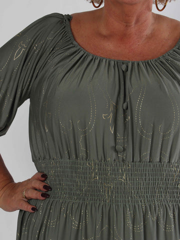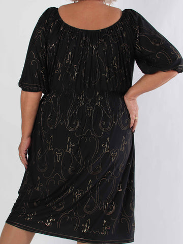 Ebba Abstract Long - Elastisk plus size klänning med fint guldmönster