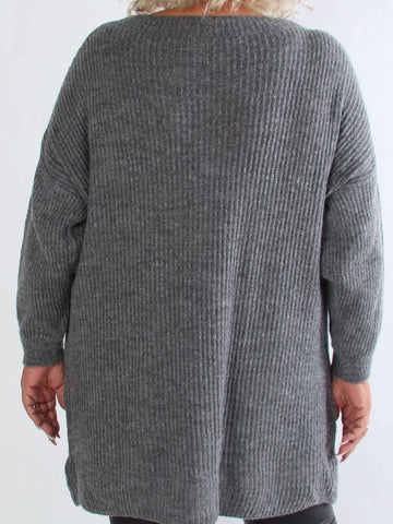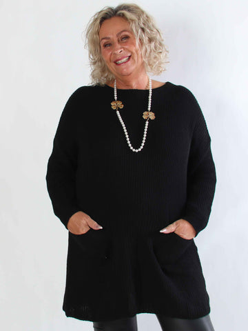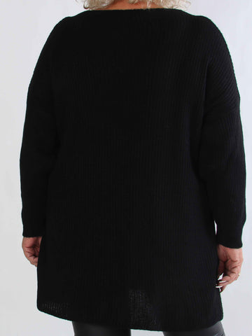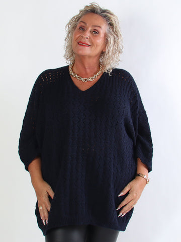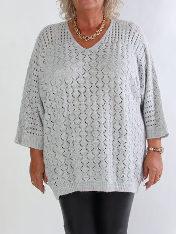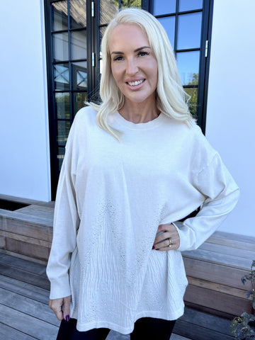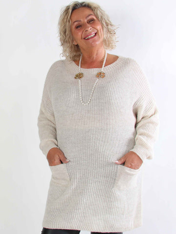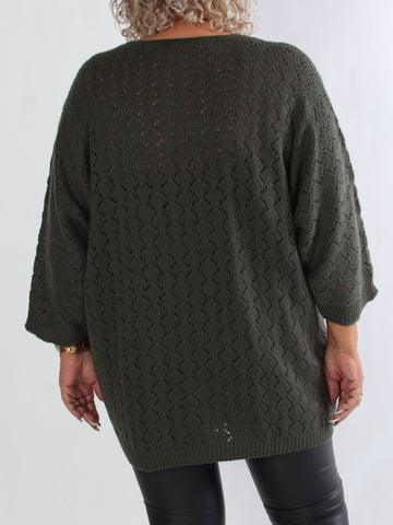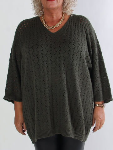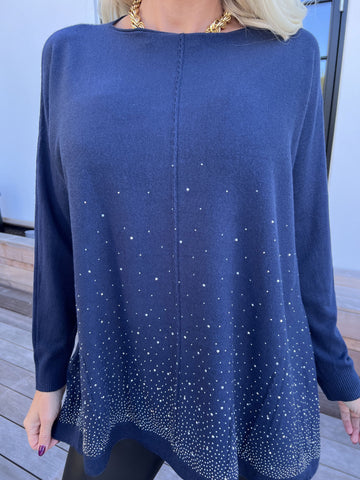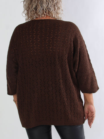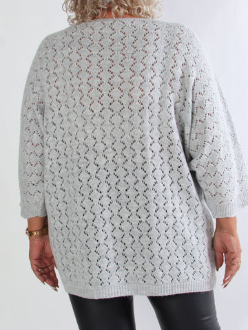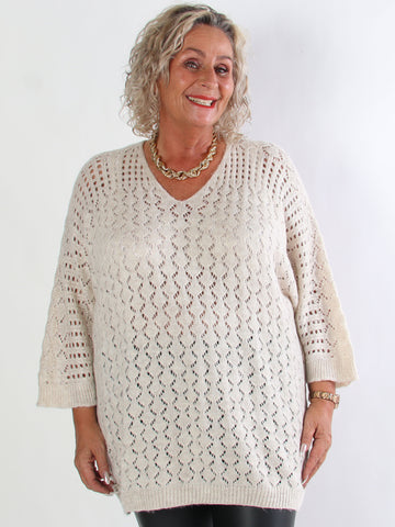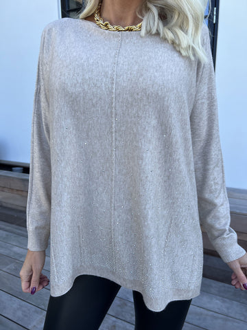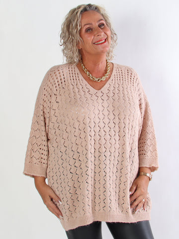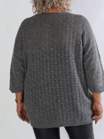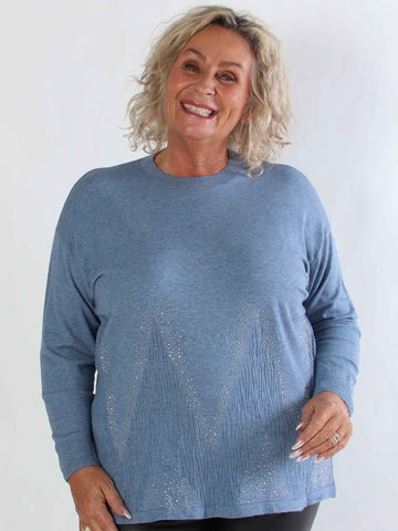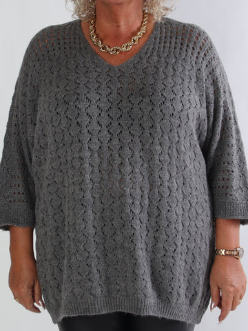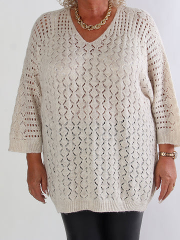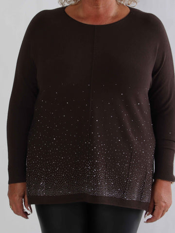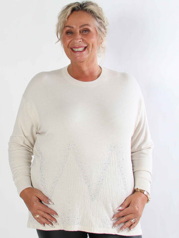Inga - Supermjuk stickad plus size tröja dekorerad med strass