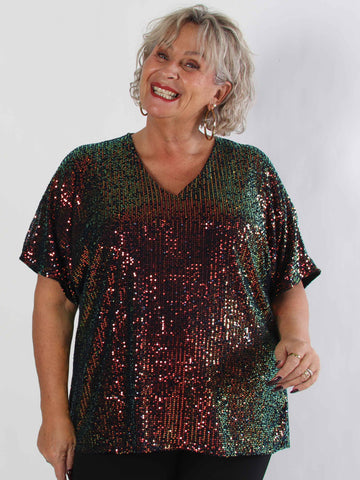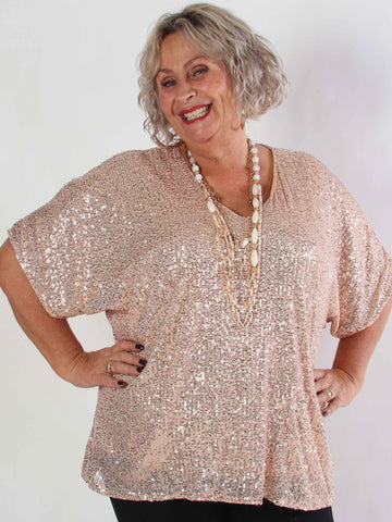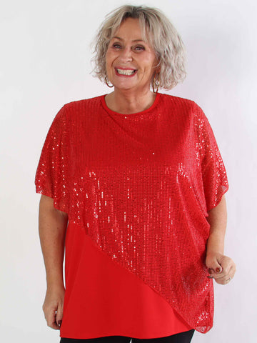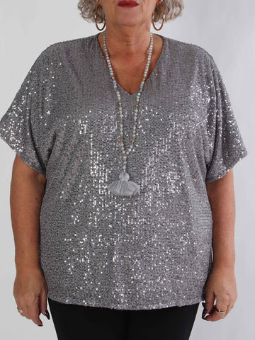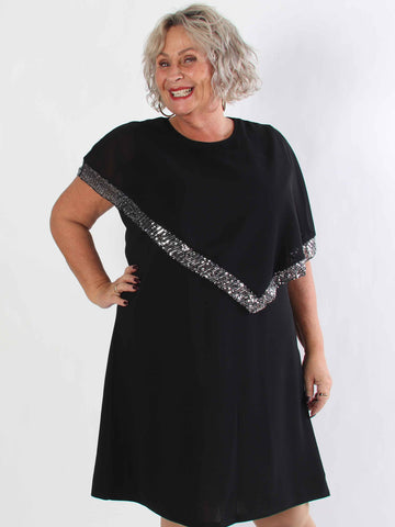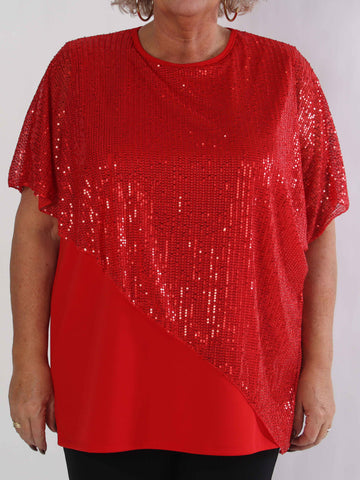 Aude - Plus size tunika med asymmetrisk pailletlag