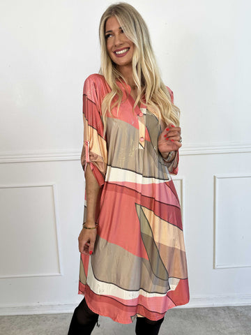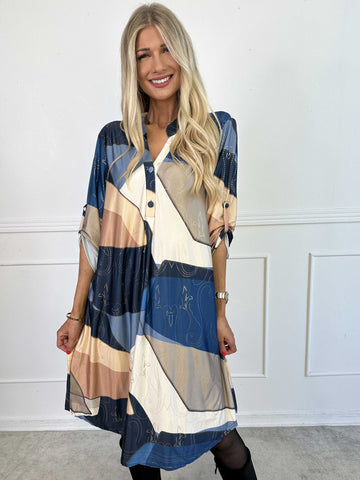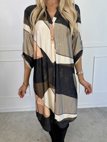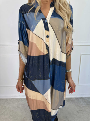 Vivien Royal - 3/4 ærmet kjole med mønster og slåede knapper