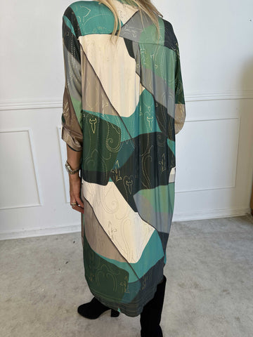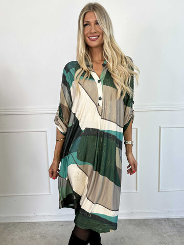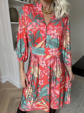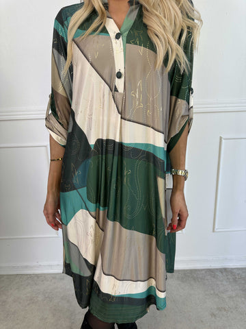 Vivien New Leaf - 3/4 ærmet kjole med mønster og slåede knapper