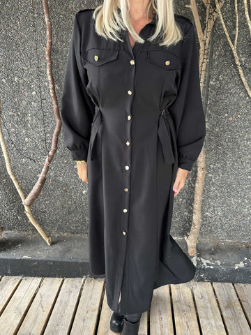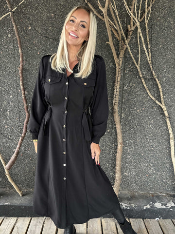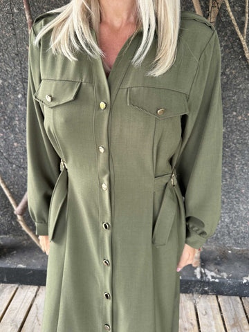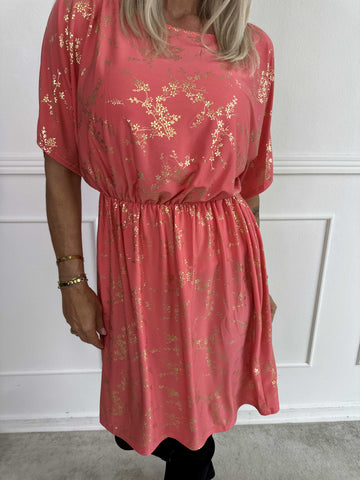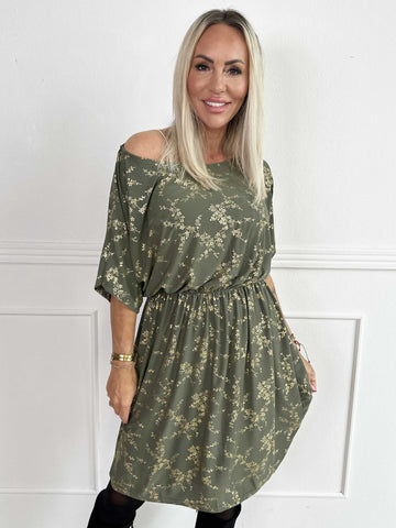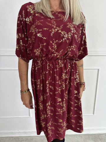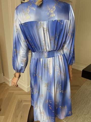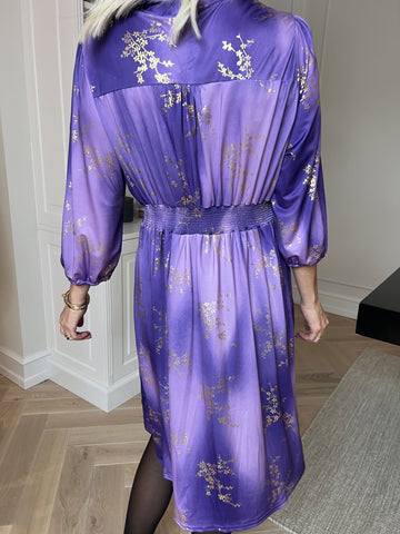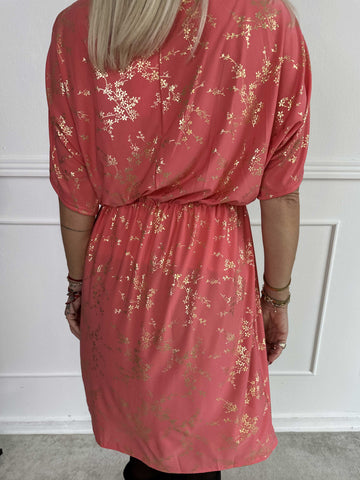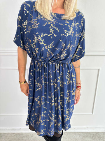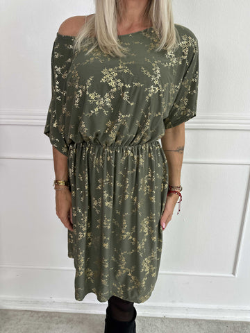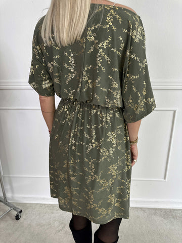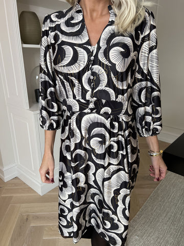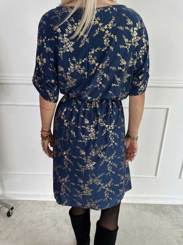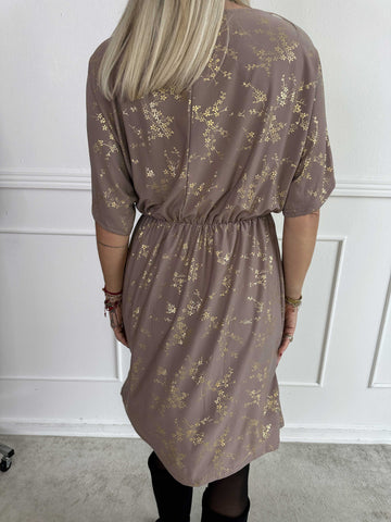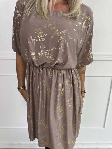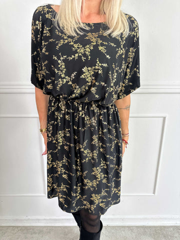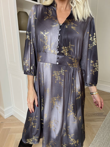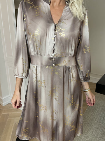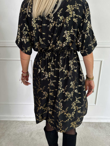 Vivien Gold - 3/4 ærmet kjole med guldprint og slåede knapper