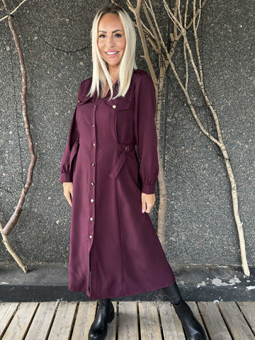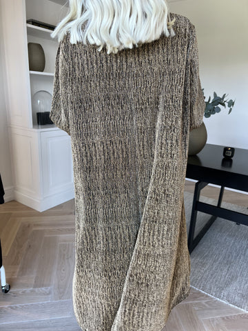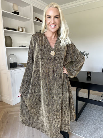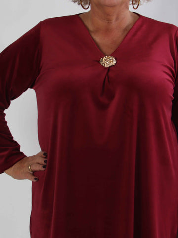 Ylva - Blød plus size tunikakjole i velour med guld broche