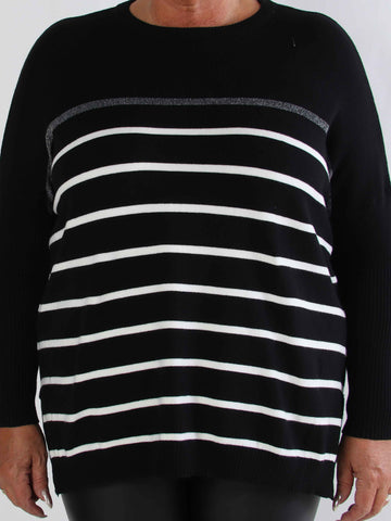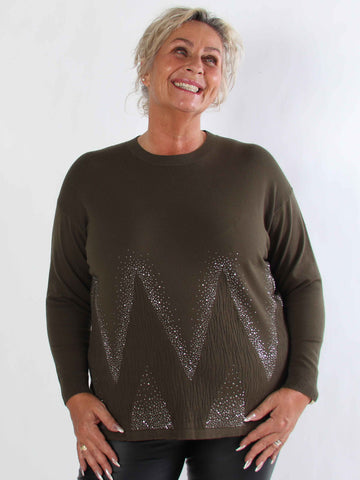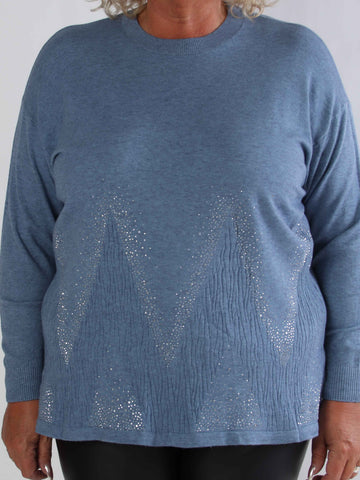Ellrun - Plus size tröja med sicksackmönster av strass nedtill