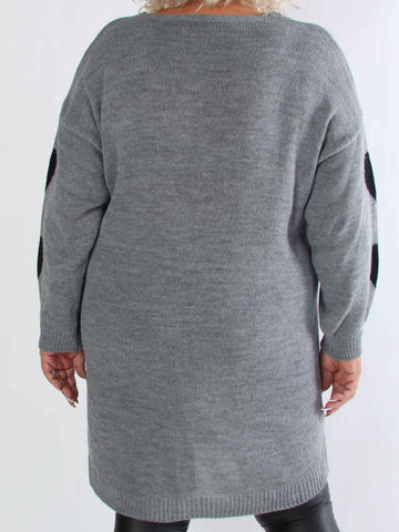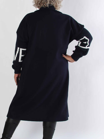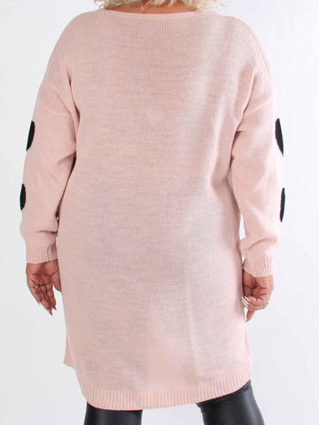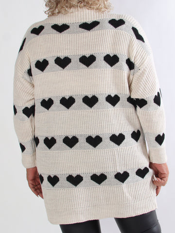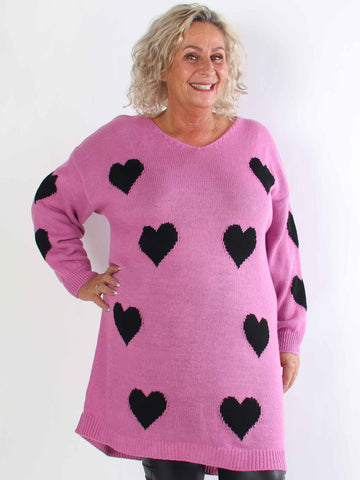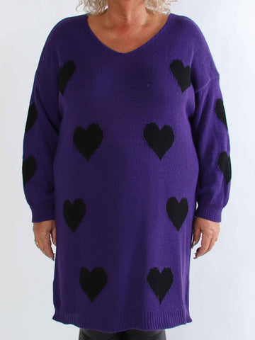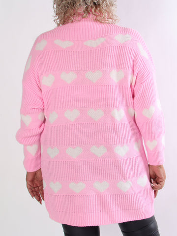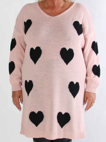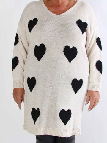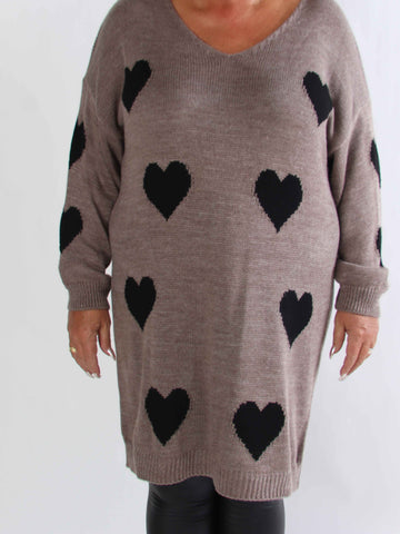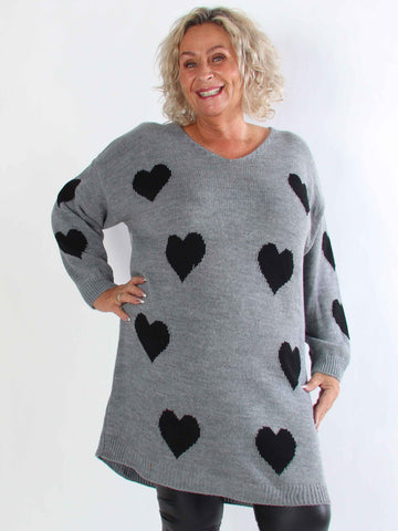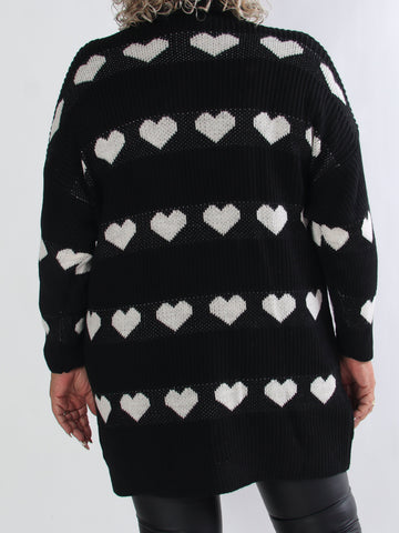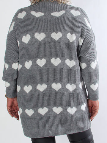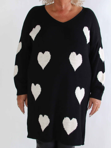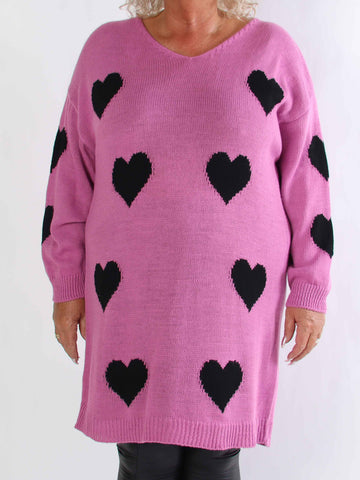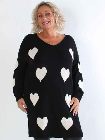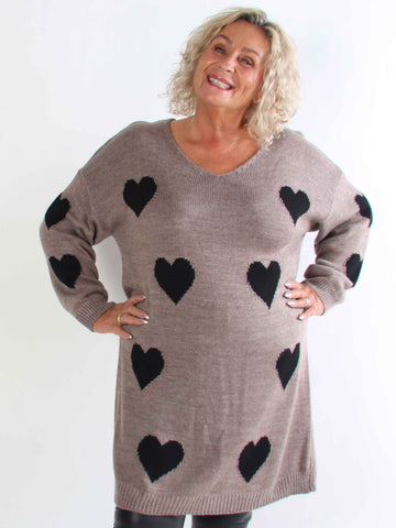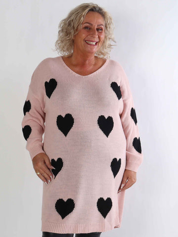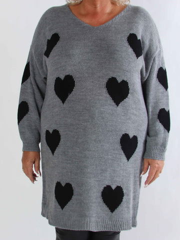 Esly - Stickad plus size klänning med hjärtan och v-ringning