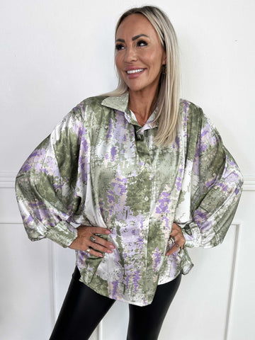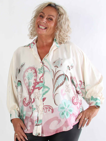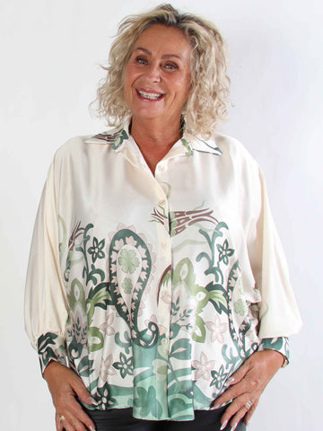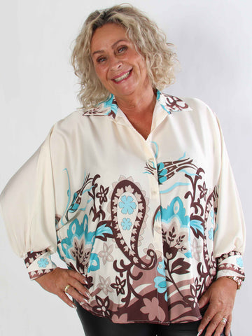 Feliciti Paisley - Mönstrad plus size skjorta med fladdermusärmar