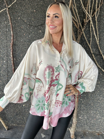 Feliciti Paisley - Mönstrad skjorta med fladdermusärmar