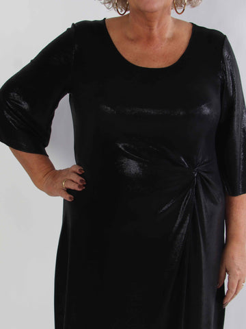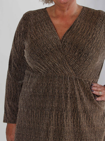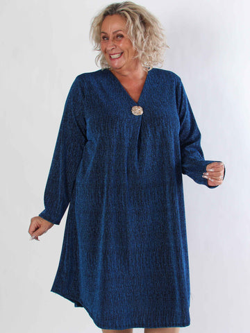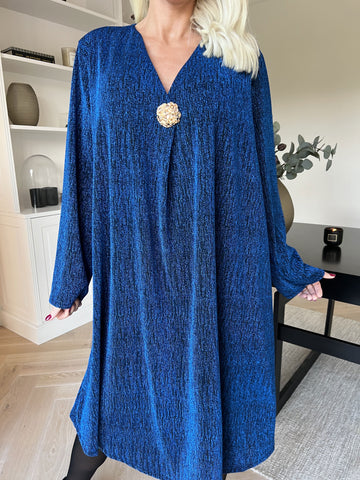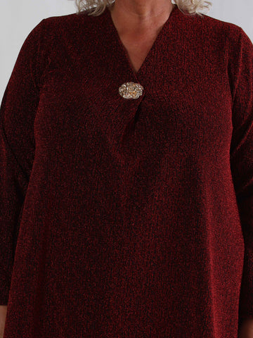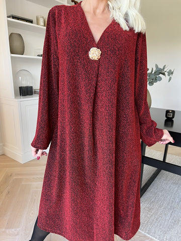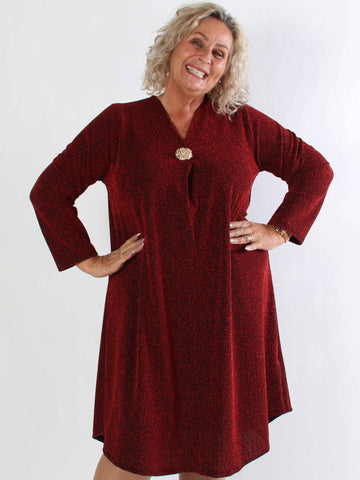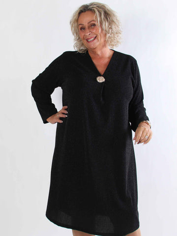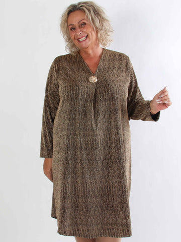 Noelia - Plus size klänning med glittertråd och guldbrosch