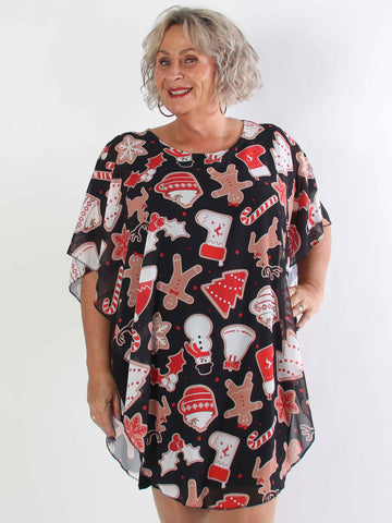 Kenya Gingerbread - Plus size tunikaklänning med peparkaksmotiv