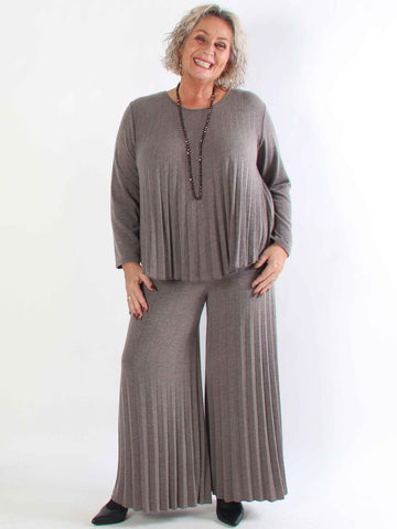 Anita Pants - Mjuka och eleganta plisserade plus size stickade byxor