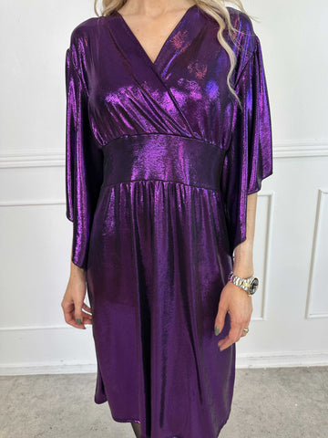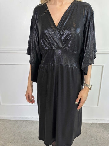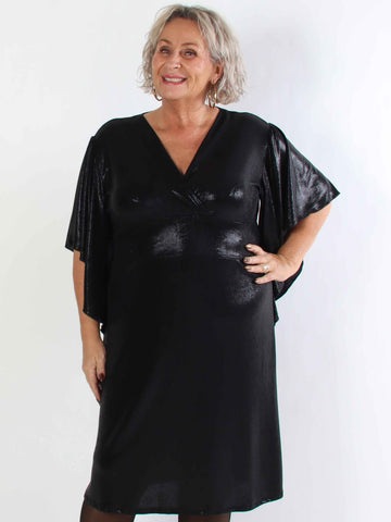 Safi - Elegant plus size klänning i glansigt material med söta ärmar
