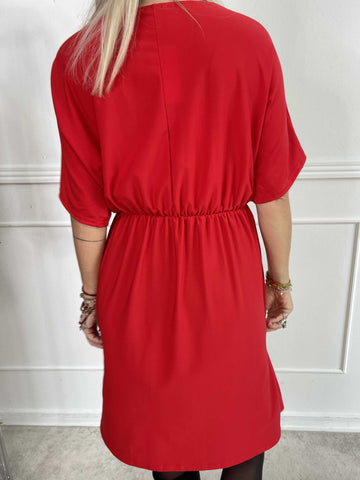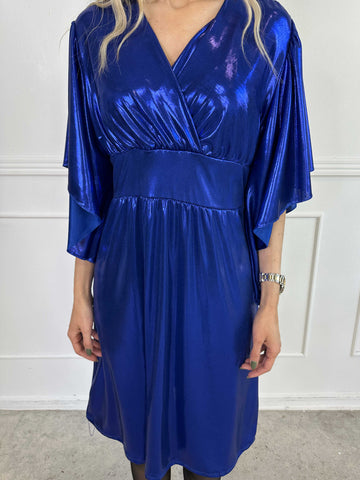 Safi - Elegant klänning i glansigt material med söta ärmar