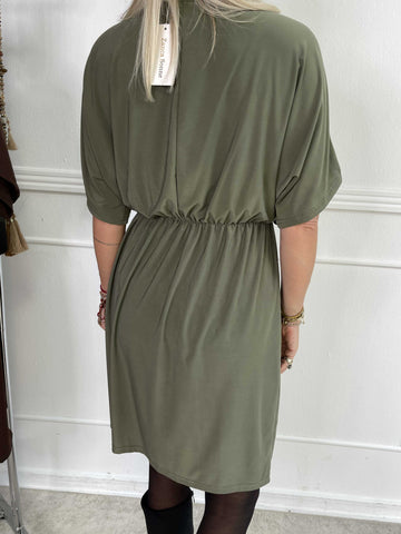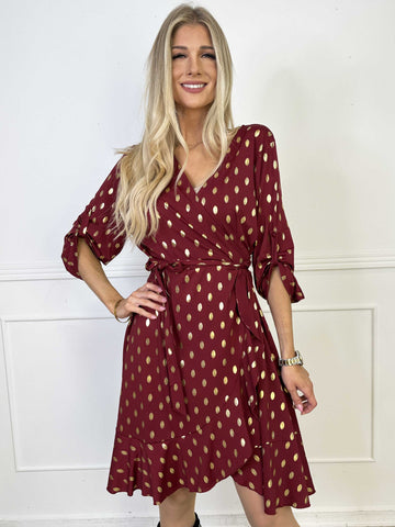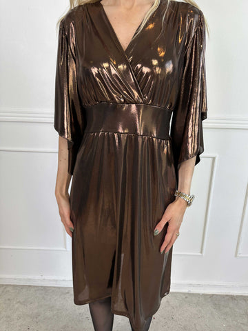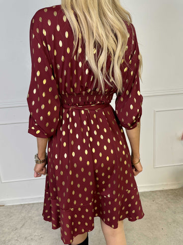 Savina Gold - Elastisk kjole i slå-om-look med guld dutter