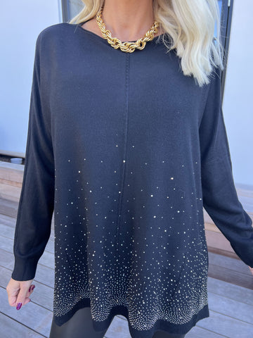 Inga - Supermjuk stickad tröja dekorerad med strass
