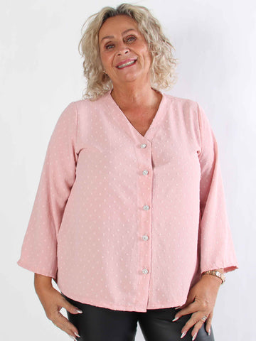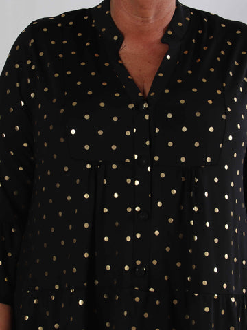Iselin - Söt plus size tunika med prickiga detaljer och silverknappar