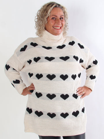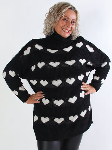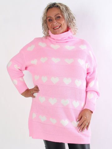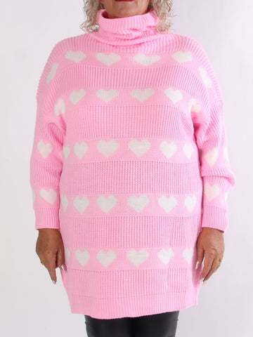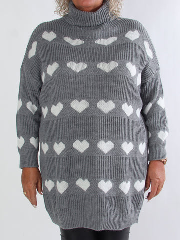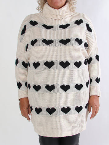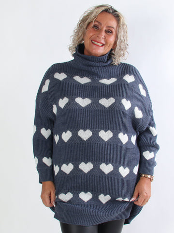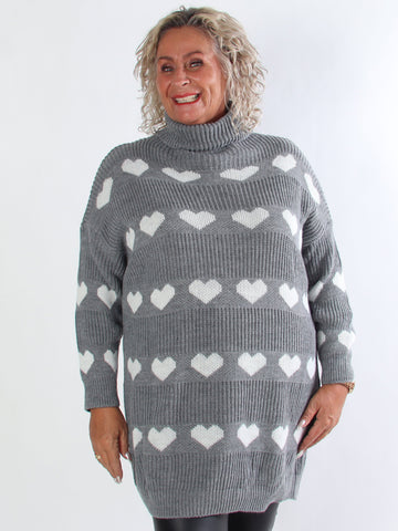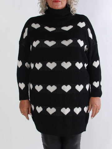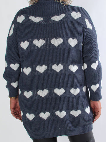 Jody - Stickad plus size klänning med hjärtan och polokrage