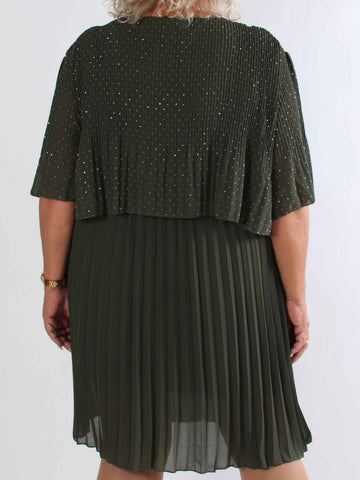 Kristina Crystal - Plisserad plus size klänning med strass och volanglager