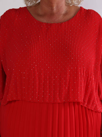 Electra - Plisseret kjole med A-facon og pailletærmer