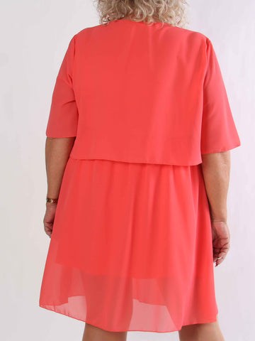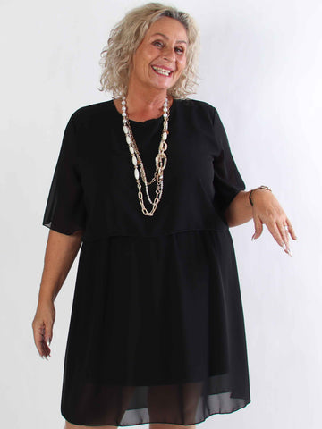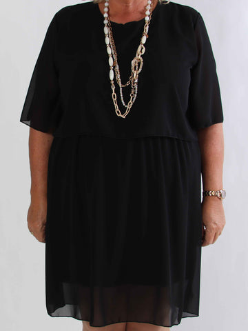 Kristina Plain - Söt plain plus size klänning i chiffong med volanglager