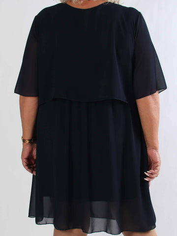 Alpha - Sød plus size tunikakjole med et chiffonlag med skinnende sten