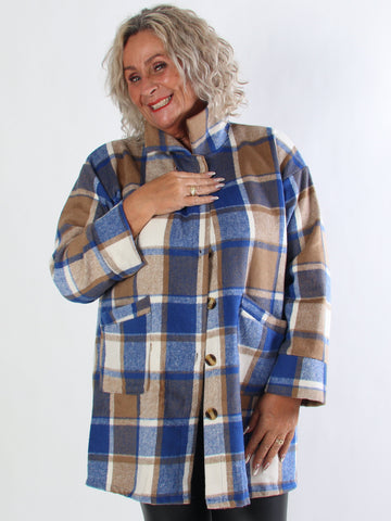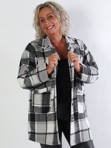 Lagos - Mjuk rutig plus size skjortjacka i viskos