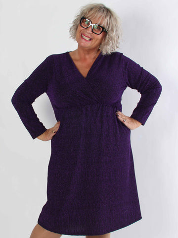 Lina - Söt plus size festklänning med glittertråd och korsdetalj vid bysten
