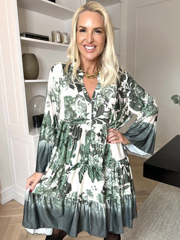Milania Flower - Elastisk blomstret kjole med flæselag