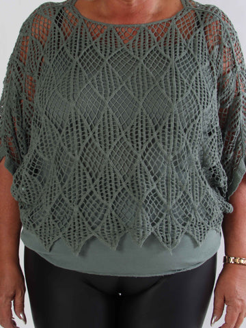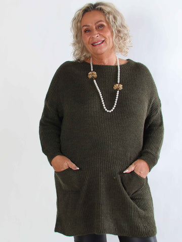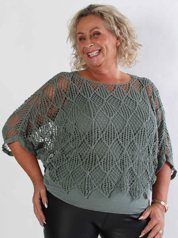 Debbie Midi - Fin plus size kappa med stickade ärmar