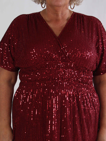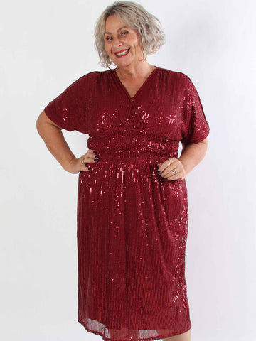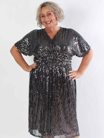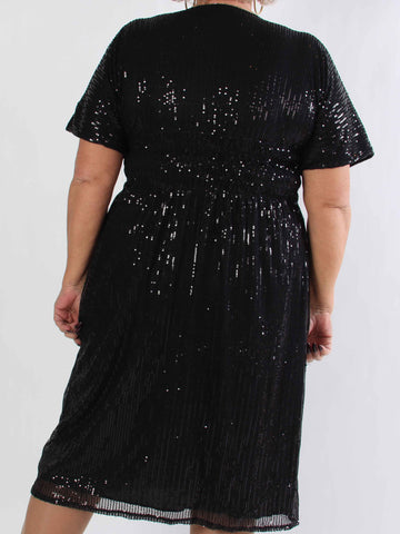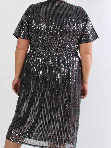 Pams Glitter Midi - Fin plus size klänning med paljetter och smock i midjan