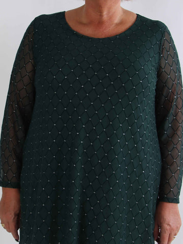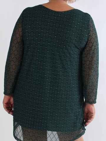 Ritte - Långärmad plus size meshklänning med glitterdetaljer