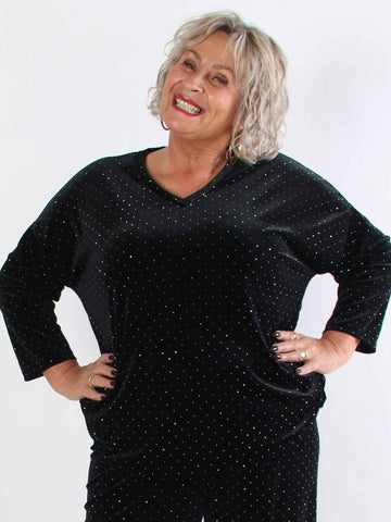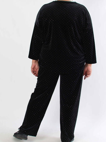 Sparkling - Blødt velour plus size sæt med skinnede sten