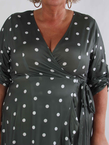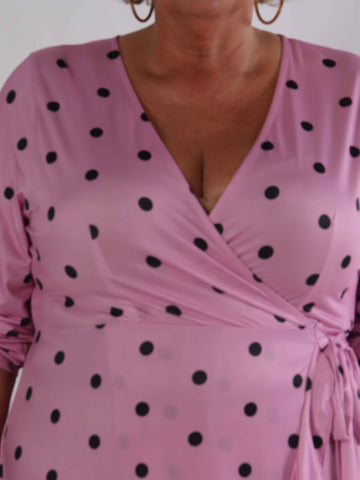 Savina Dot - Elastisk plus size kjole i slå-om-look med prikker
