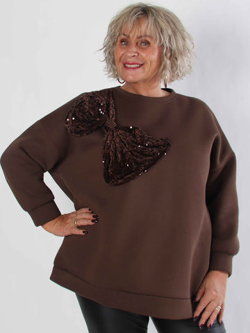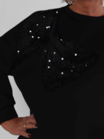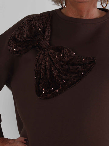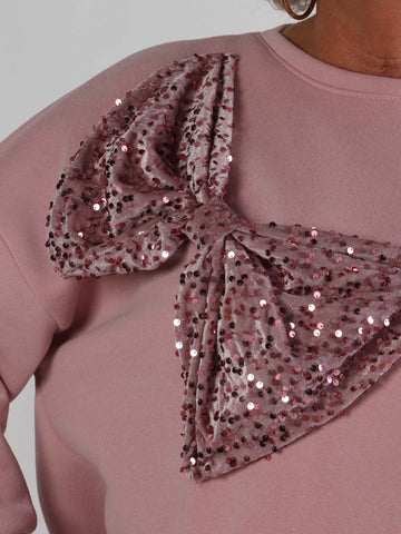 Thalassa - Plus size sweatshirt i bomuld med stor velour sløjfe