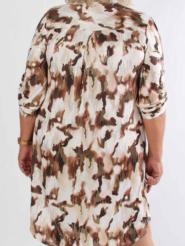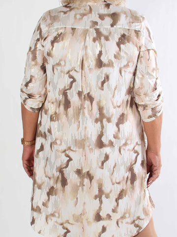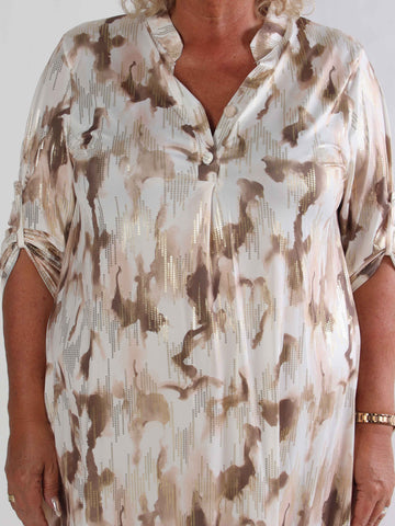 Elna Gold Shirt L/S - Plus size blus med guldmönster och smock över bysten