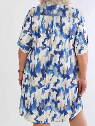 Pams New Leaf Short - Plus size klänning med färgat blommönster och gulddetaljer