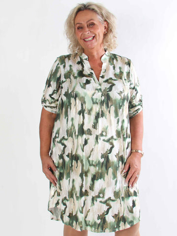 Pamina Leaf Short - Kort elastisk plus size klänning med bladmotiv