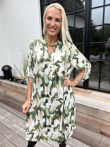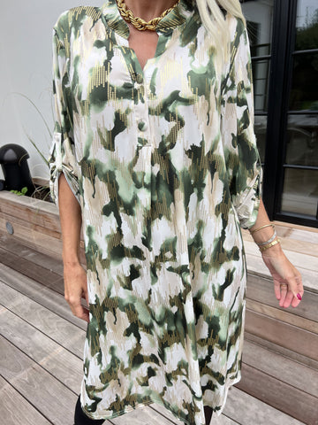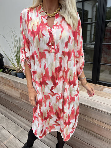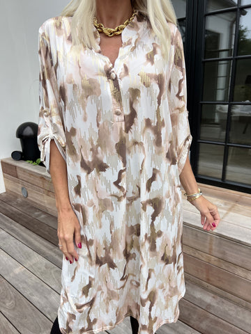 Etlana - Mönstrad tunikaklänning med korta ärmar