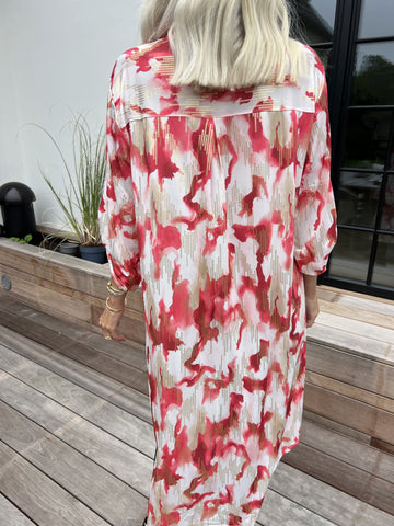 Ebba Paint Long - Elastisk flerfärgad plus size klänning med guldprickar