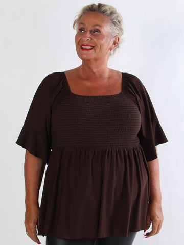 Elna Plain Shirt - Elastisk plain plus size blus med smock över bysten