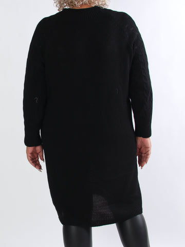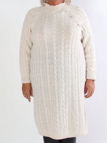 Floresta - Kabelstickad plus size klänning med guldfärgade knappar