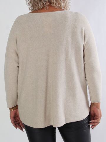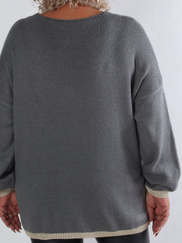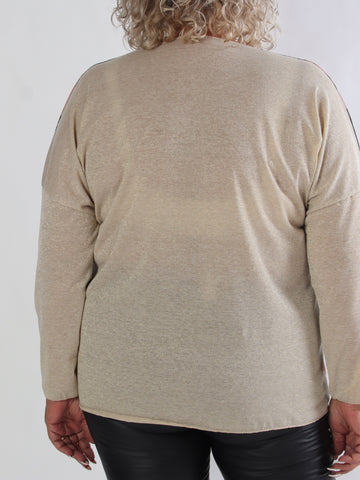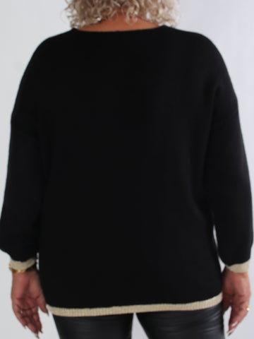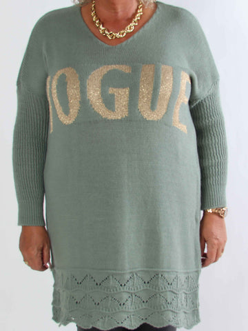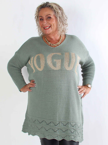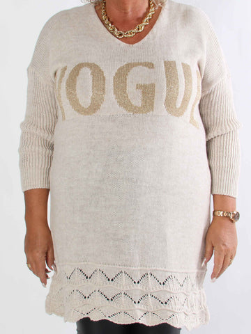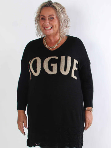 Priscilla - Stickad plus size tröja med VOGUE skrivet i guldglittertråd