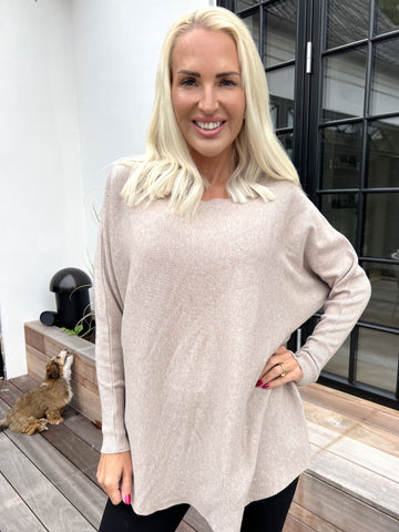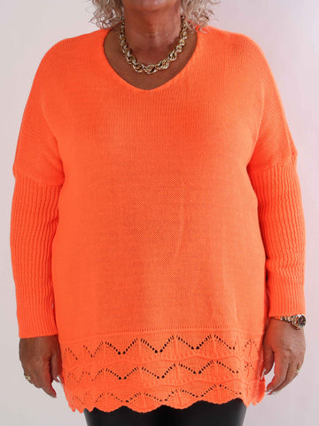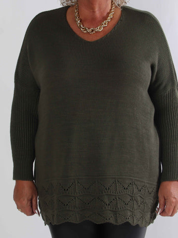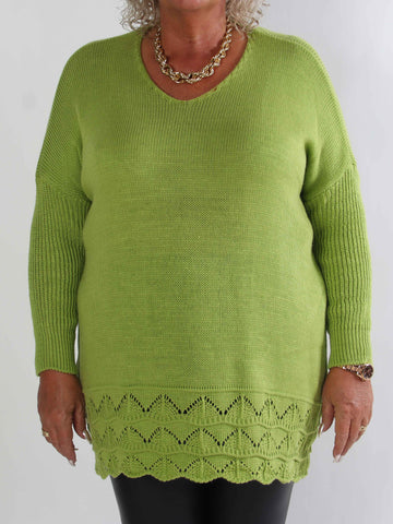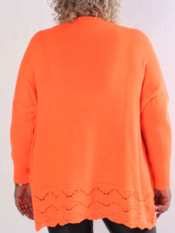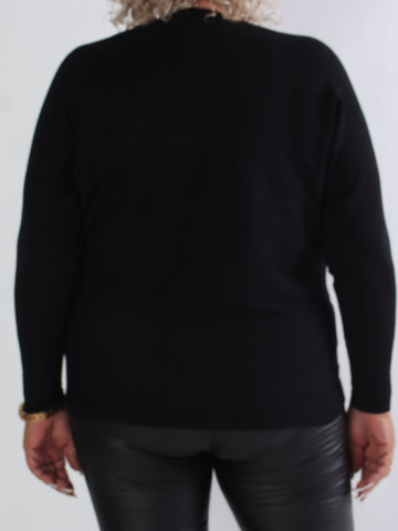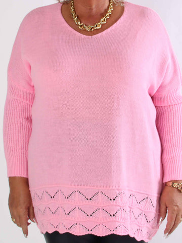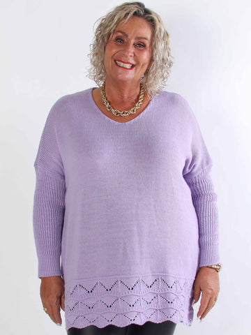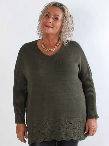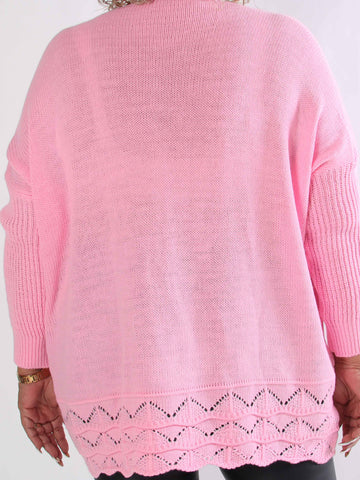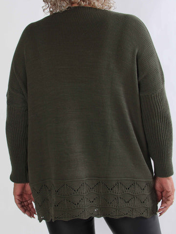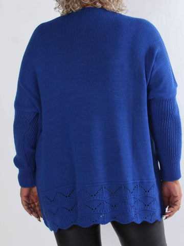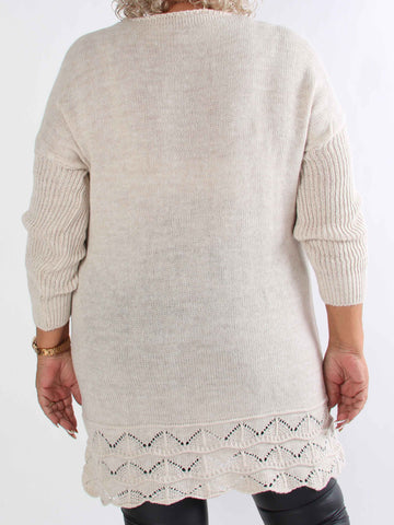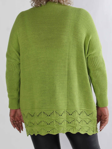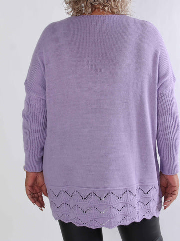 Pia - Stickad plus size tröja med hålmönster och fladdermusärmar