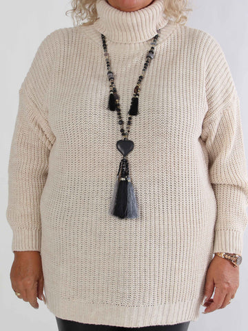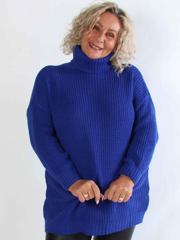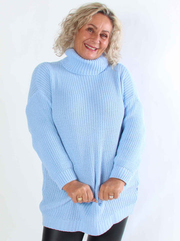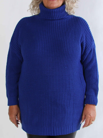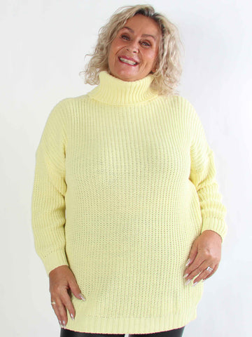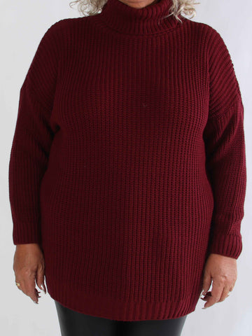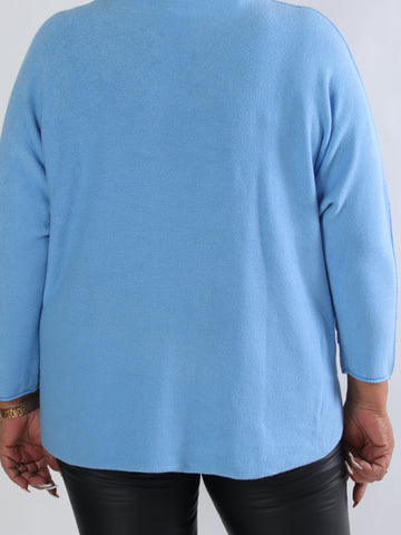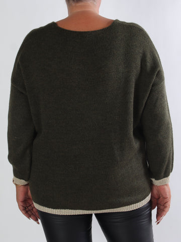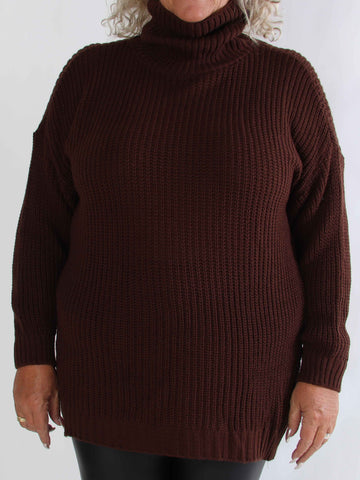 Cindy - Enfärgad mysig stickad plus size tröja med polokrage