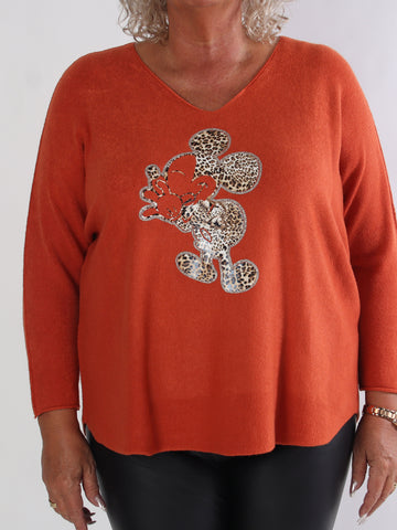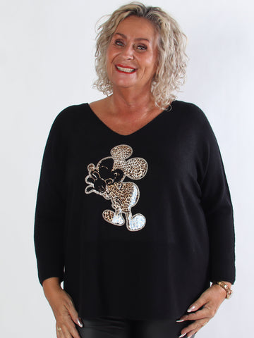 Mouse - Mjuk plus size tröja med mickey tryck i leopardmönster