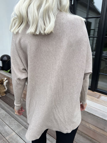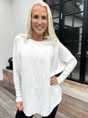 Pia – Oversized stickad tröja med hålmönster och fladdermusärmar