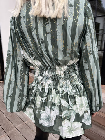 Elna Beautiful Short - Blommig elastisk klänning med smock över bysten