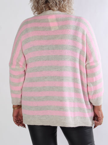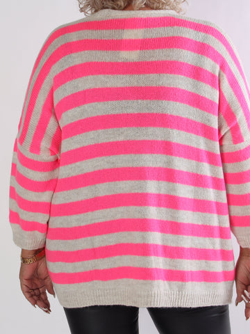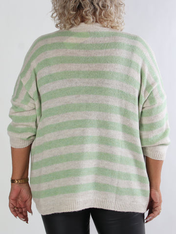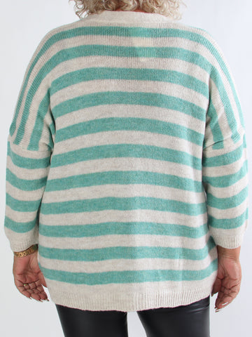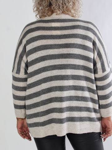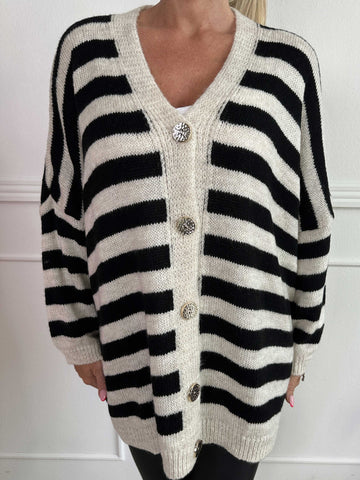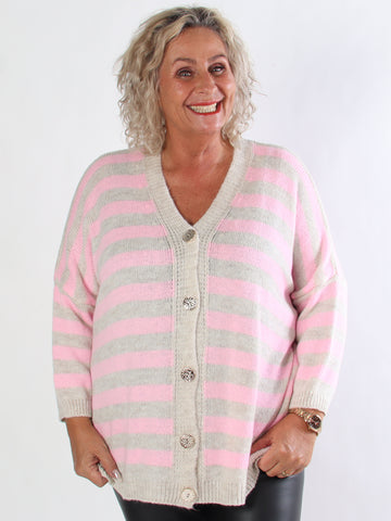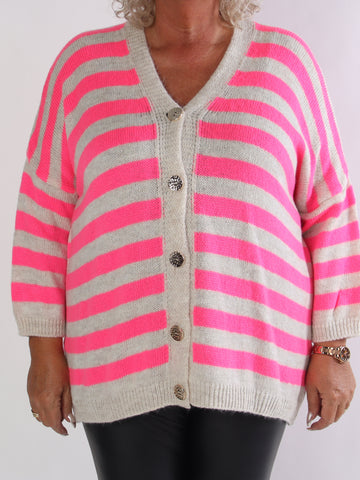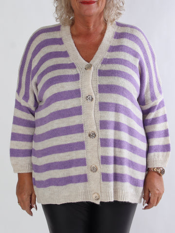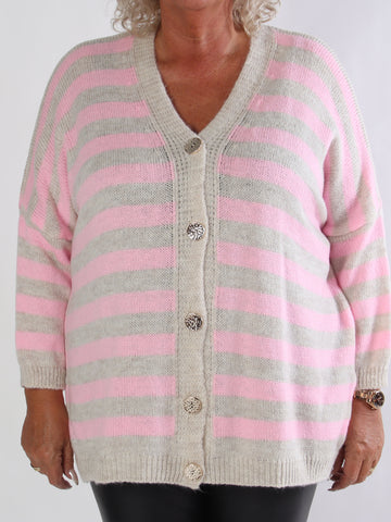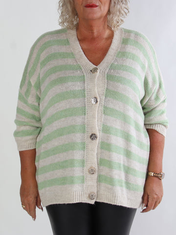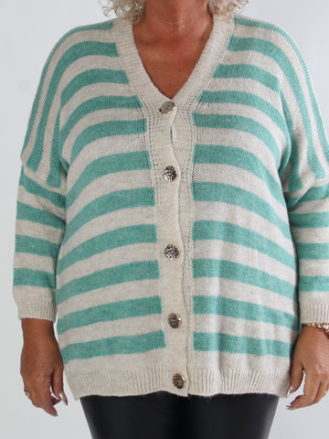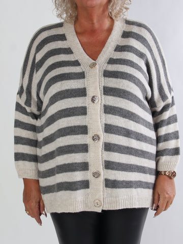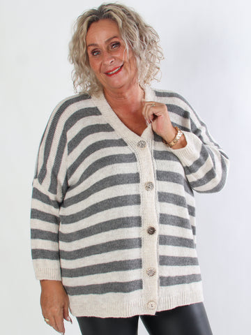 Parker - Randig stickad plus size kofta med stora guldknappar