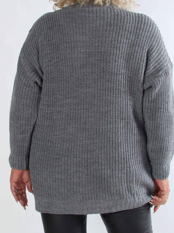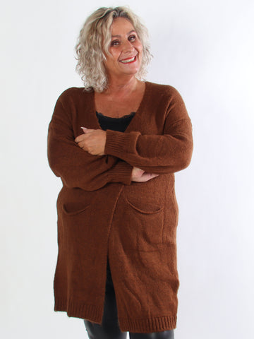Valentine - Stickad plus size kofta med fickor