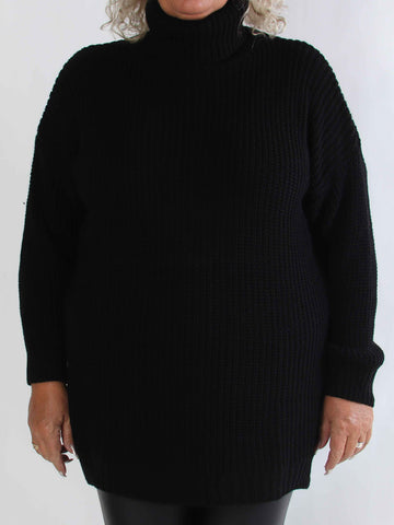 Garaldine - Plus size klänning med stickat mönster och turtleneck